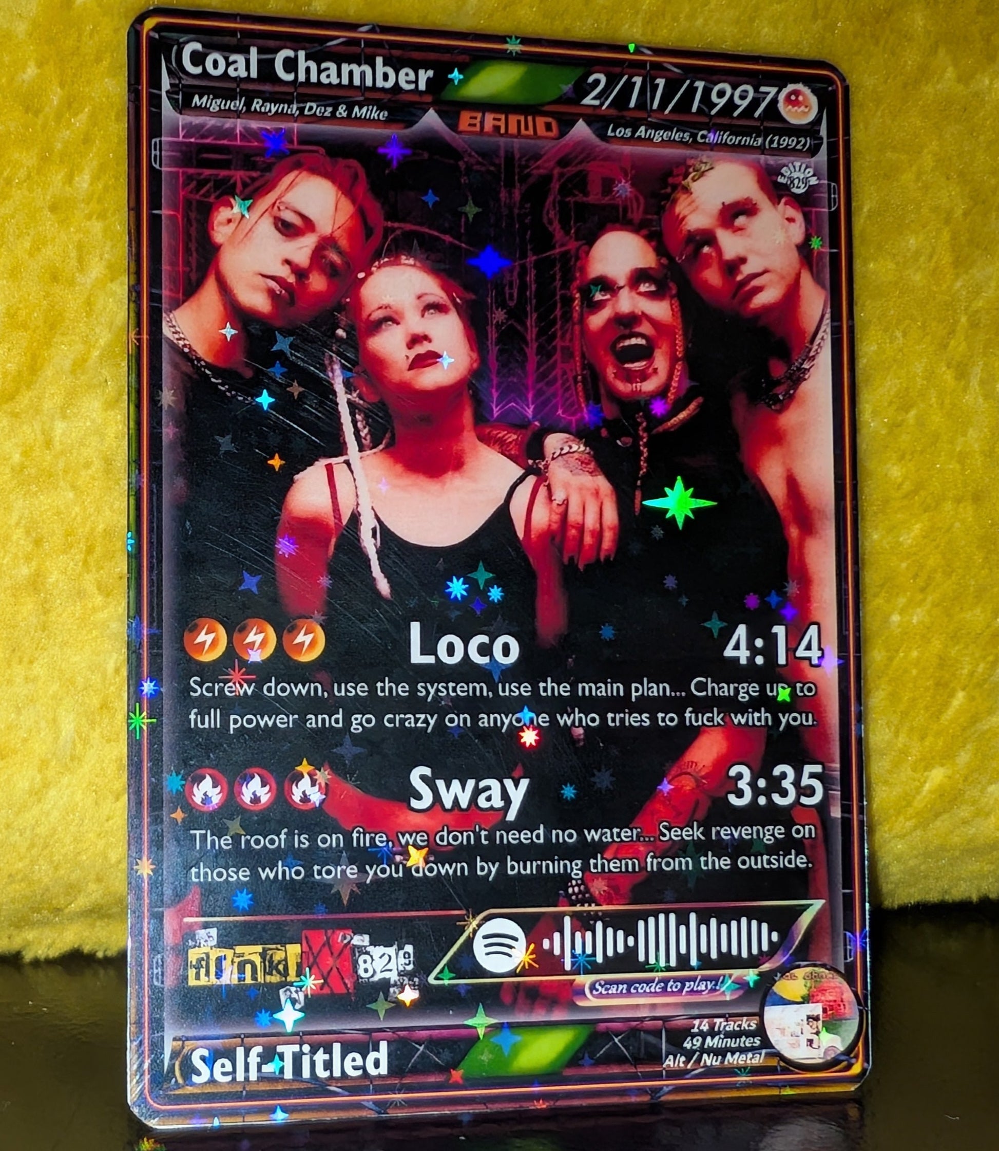 Features working Spotify code that when scanned, plays a song shown on the card!