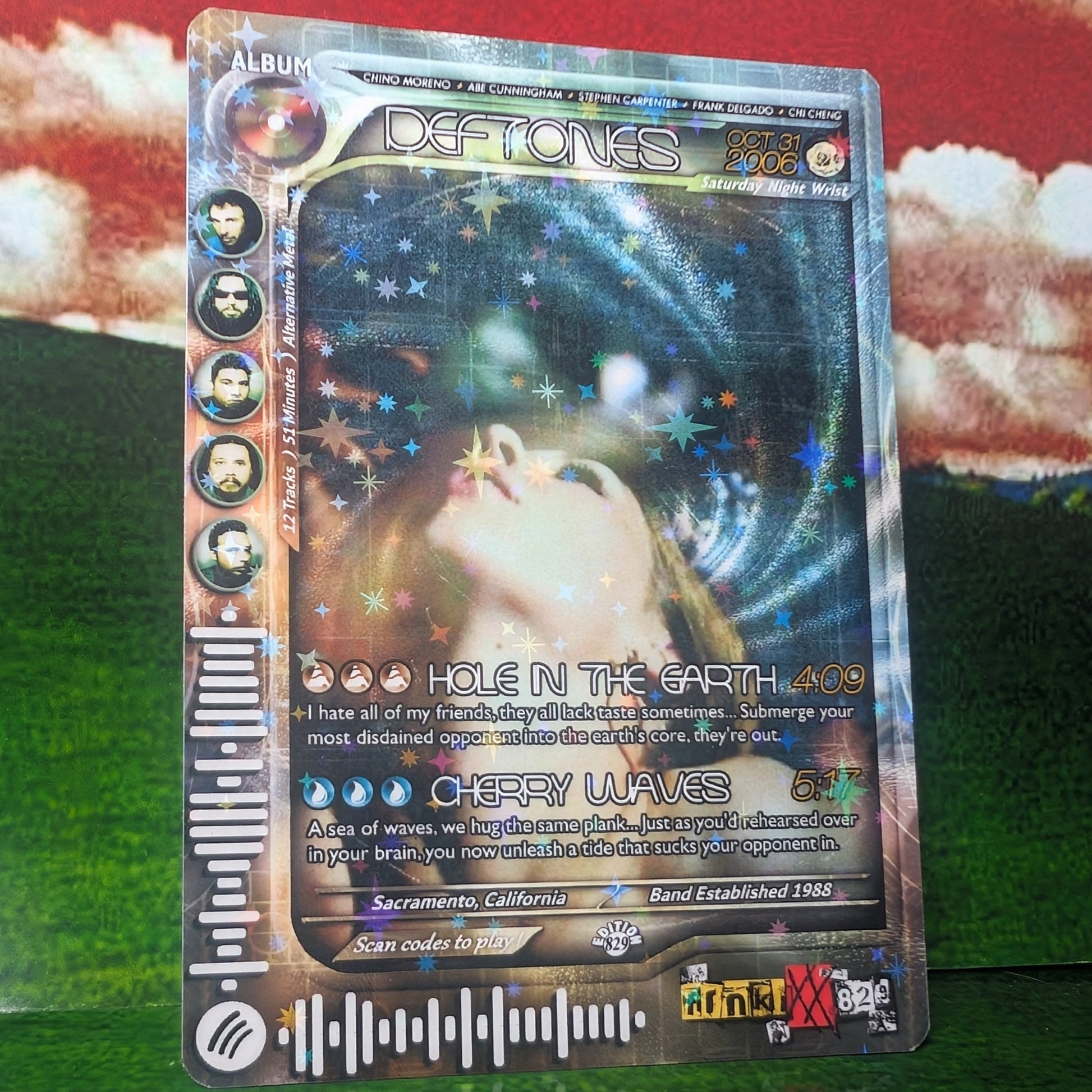 Crafted and shipped by hand, with love, by frnkixx. Comes with one Deftones holographic trading card.