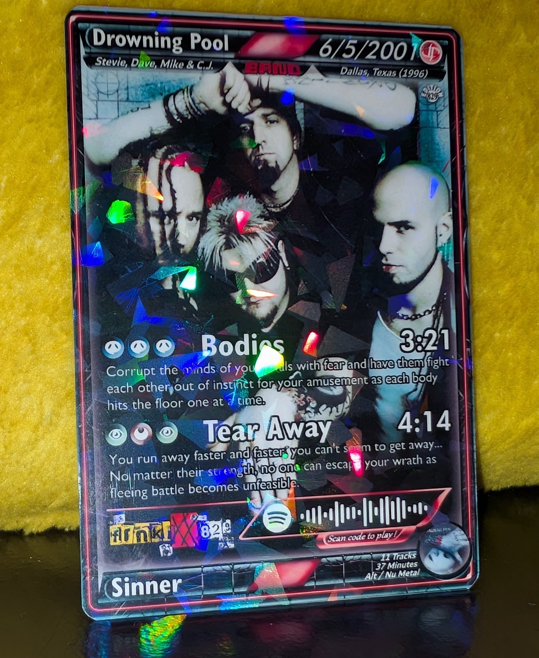 Features working Spotify code that when scanned, plays a song shown on the card!