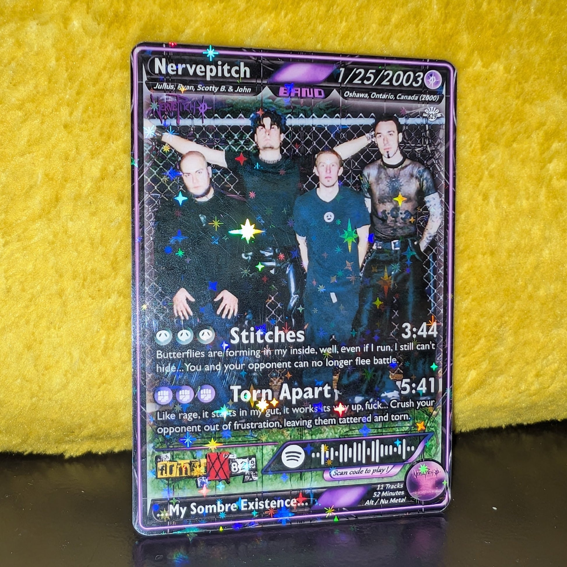 Features working Spotify code that when scanned, plays a song shown on the card!