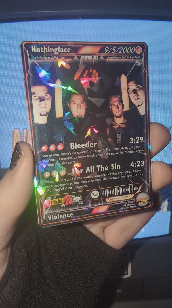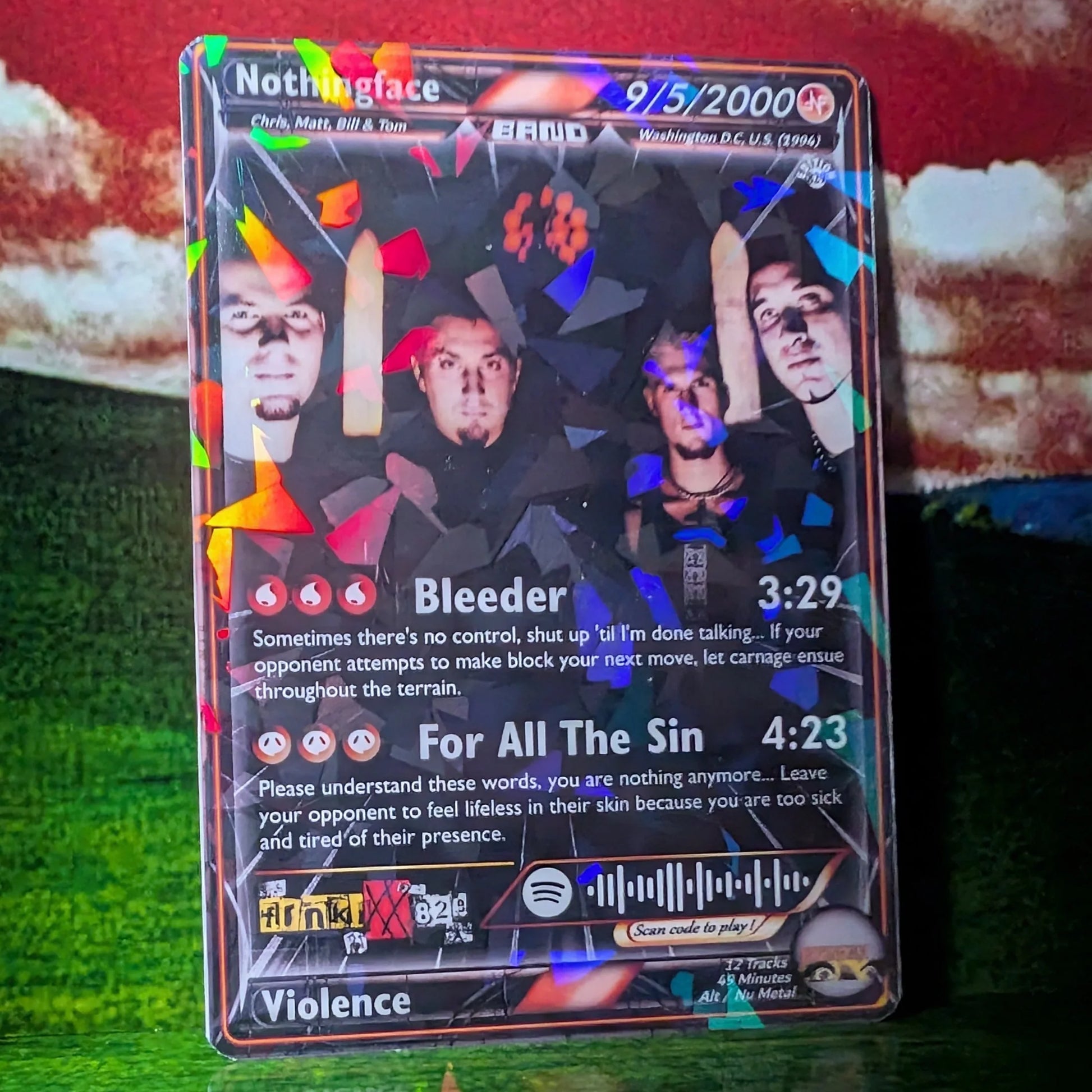 Features working Spotify code that when scanned, plays a song shown on the card!